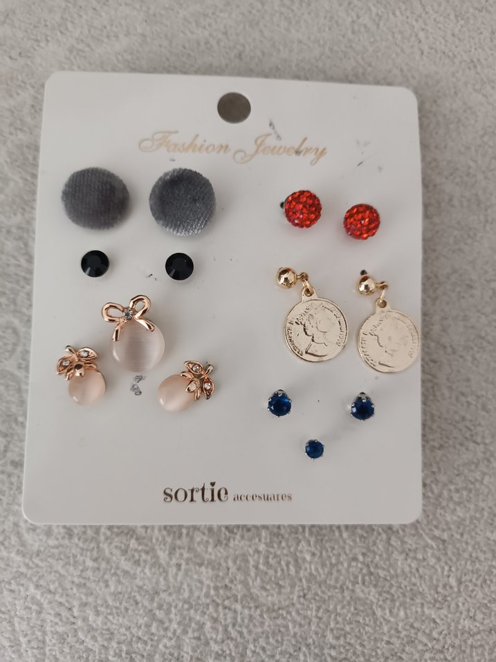 Çeşitli renk ve stillerde, kısa boy ve pul işlemeli mini küpelerden oluşan set. Etnik desenler ve trend günlük stil sunar. Günlük kullanım için uygundur. ✨