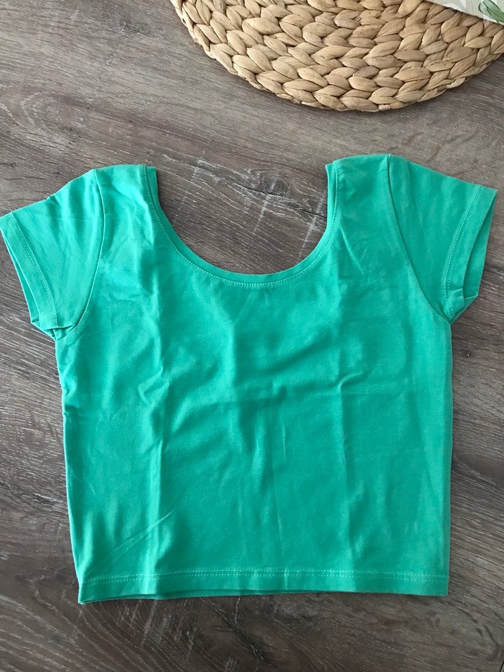 Sırt dekolteli crop etiketi m ama s bedene uygun