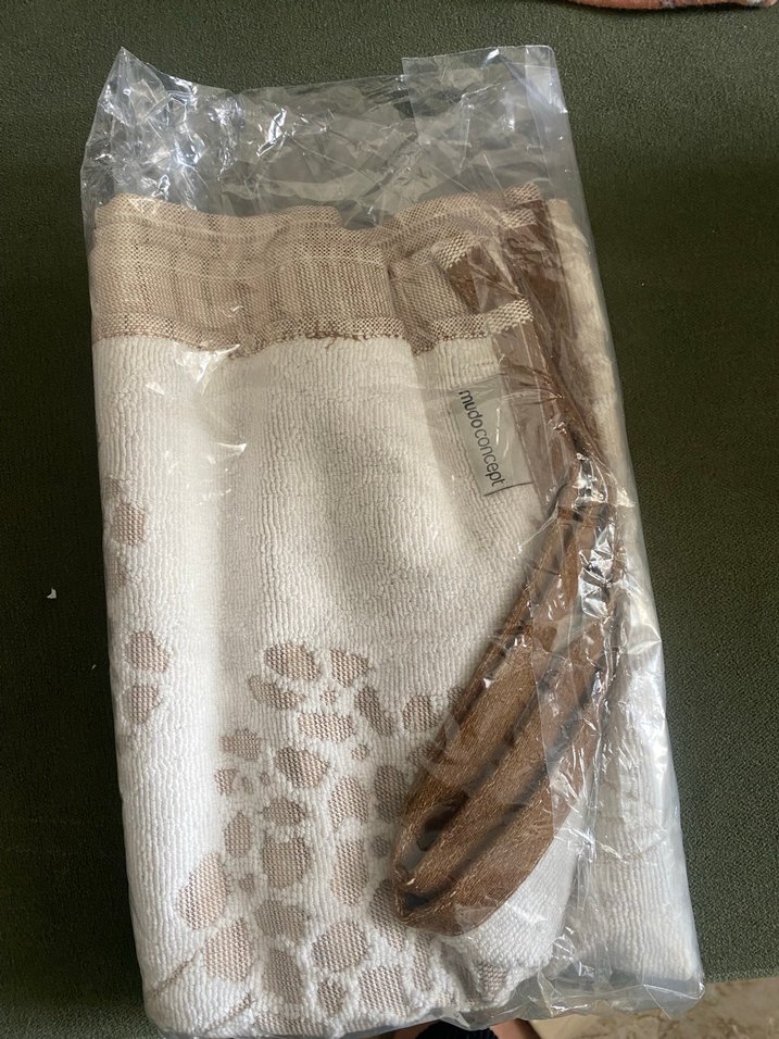 Dantel detaylı bej-kahve renkli havlu mudo consettir