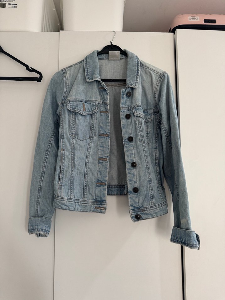 Düğmeli, uzun kollu ve normal boyda, gri renkli kadın denim cekettir. İnce kesimi ve yakasıyla günlük ve sokak stiline uygundur.