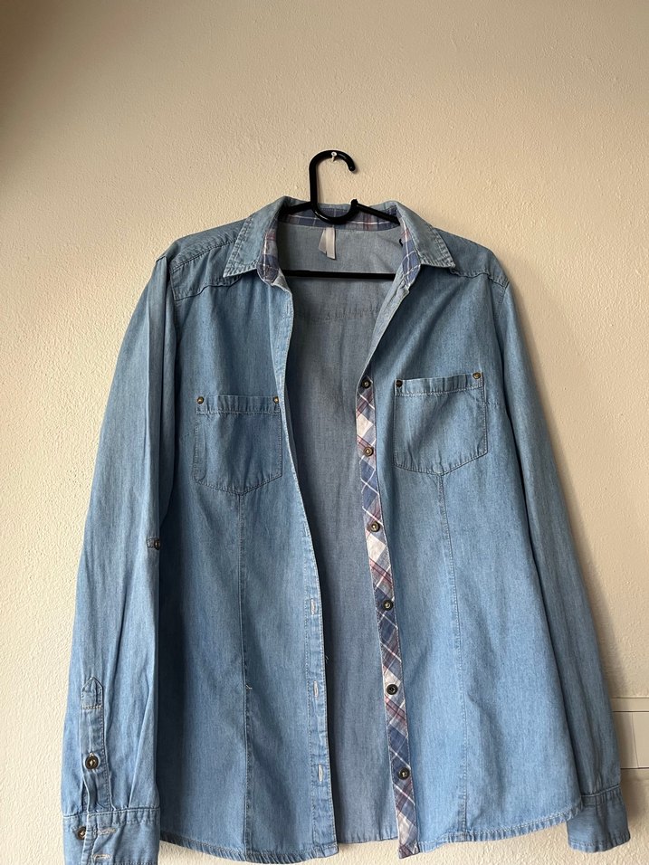 Uzun kollu, düğmeli, rahat kesim kadın denim gömlek. Cep detaylarıyla günlük kullanıma uygundur.