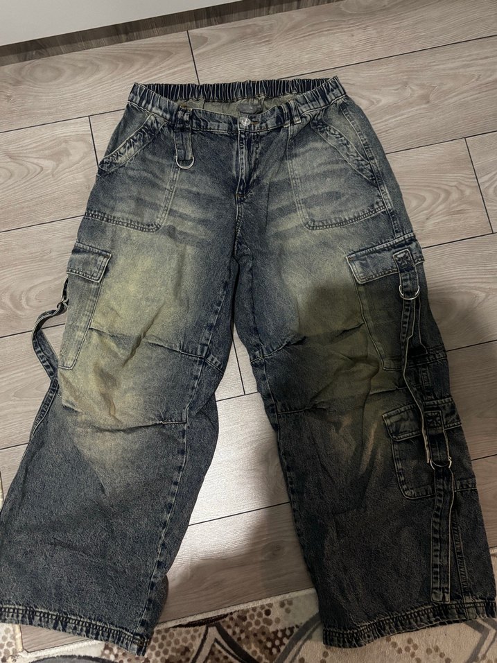 Bol kesim, denim kumaştan yapılmış, tokalı cepleri olan kadın jean. BDGJEANS 40 beden için uygun. Bana kısa geldiği için satıyorum sorunsuz.