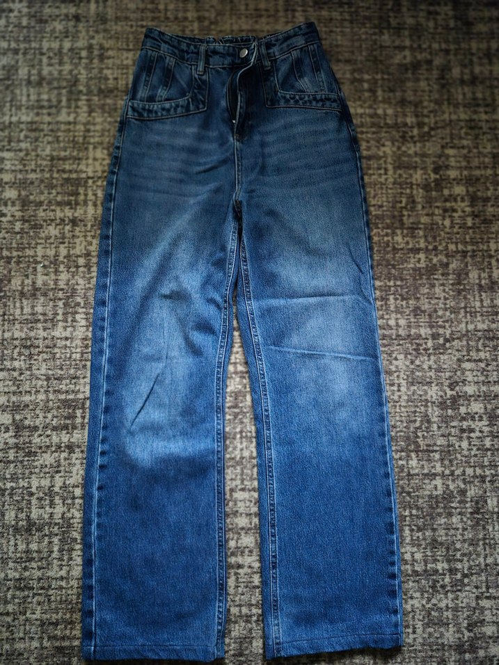 Gri mavi renkli, normal kesim kot pantolon, gündelik rahat kullanıma uygun, normcore tarzıyla zahmetsiz şıklık sunar.