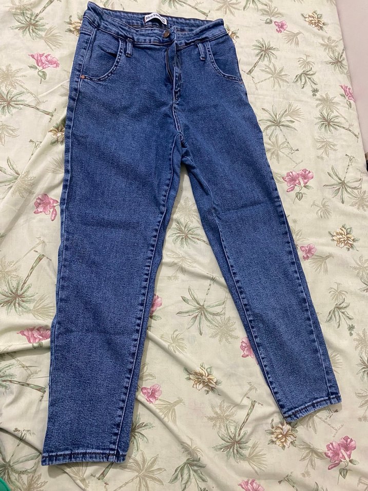 Mavi renk, normal boy, desen içermeyen, rahat kesim kadın denim pantolon, günlük kullanıma uygun şık bir görünüm sunar.