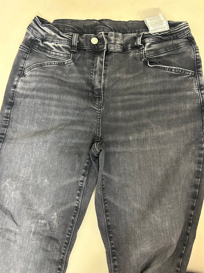 Gri renkte, rahat kesim kadın denim pantolon, günlük kullanıma uygun rahat normcore tarzı.
