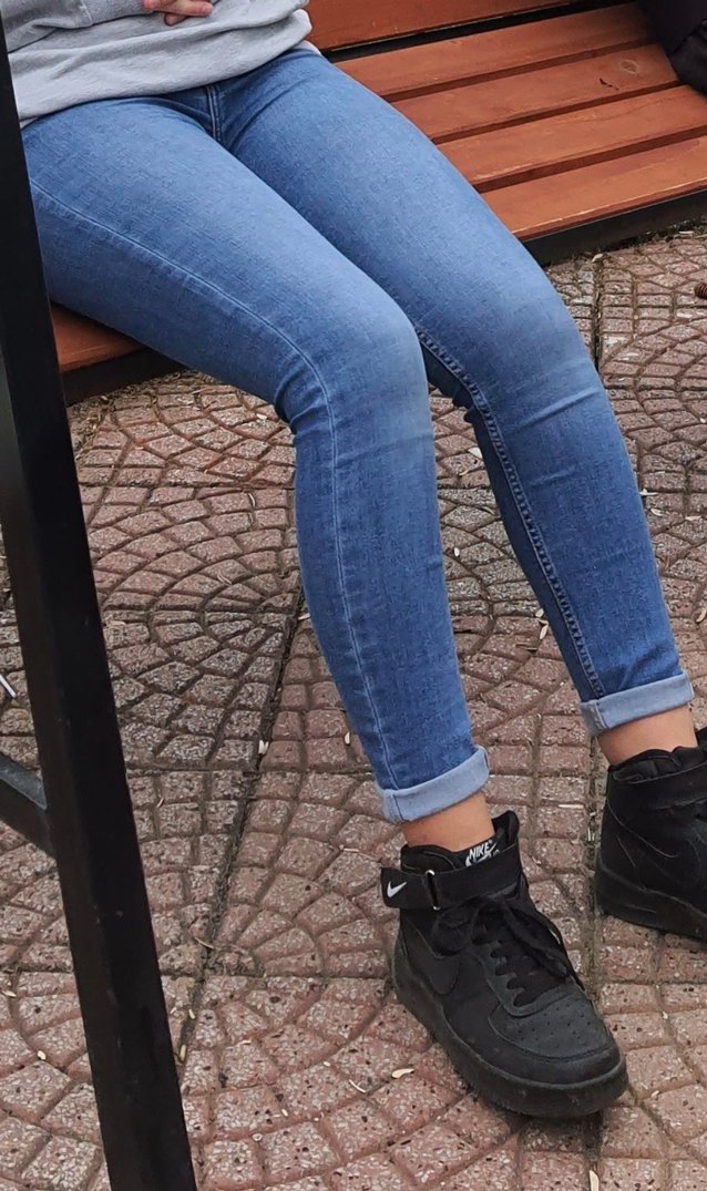 Mavi renkte, dar kesim kadın denim jean. Ben paçalarını kutlamıştım, normal modeli düz.