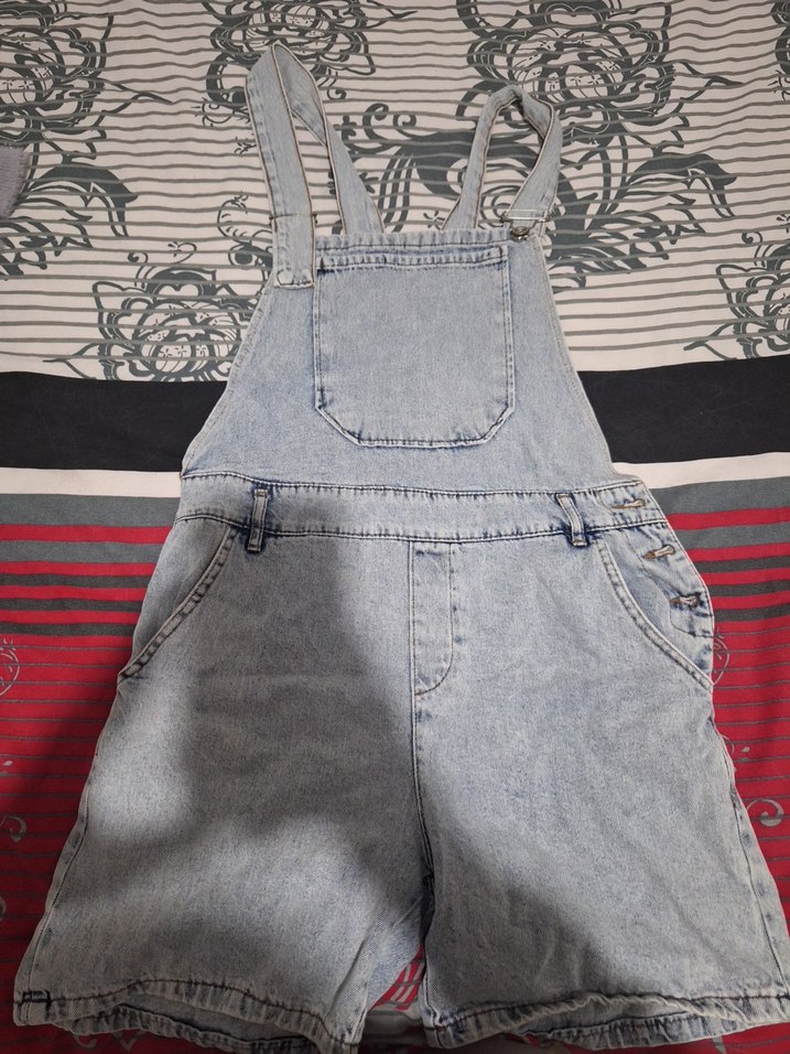 Sokak stili için askılı ve fitted kesim gri denim tulum bedeni standart