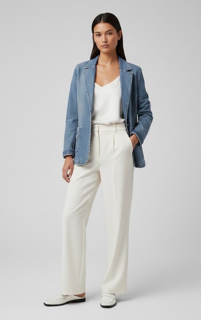Kadın Denim Vintage Blazer Ceket
