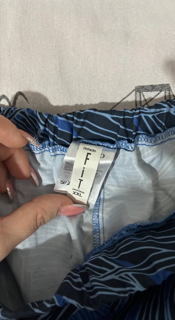 Mavi ve gri desenli, kısa mini uzunlukta, xl xxl uyumlu