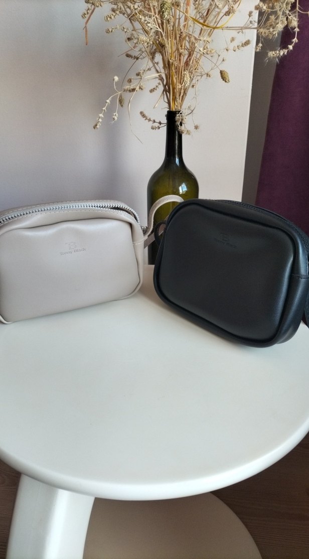 2 adet Kadın Deri Çapraz Çanta - Minimalist Beyaz ve siyah