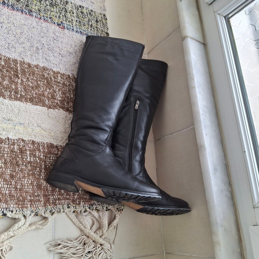 yerden yüksekliği 45.5 cm taban altı uzunluğu 17 cm kusuru yok sadece bir kaç kere giyildi 39 numara markası step by step Kadın kahverengi deri dizüstü botlar, blok topuk ve tokalı detaylarla rahat ve gündelik kullanıma uygun tarz sunar.