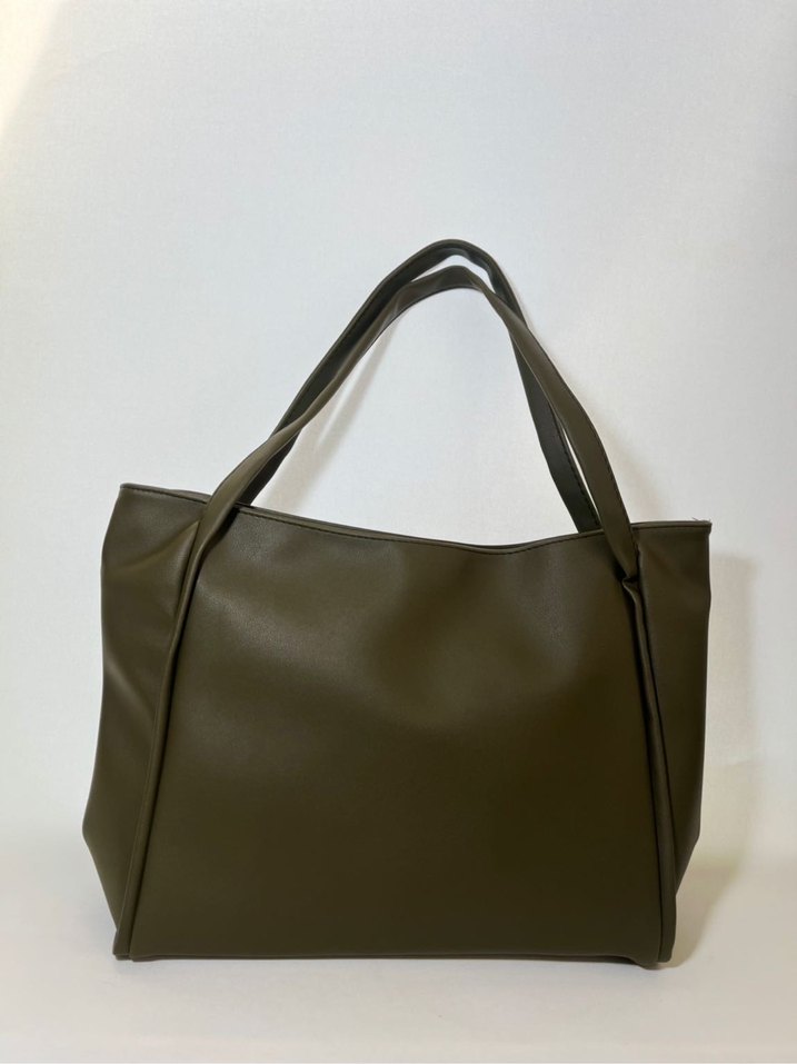 Haki renkte deri çanta, minimalist ve desensiz tasarımıyla günlük kullanıma uygun, çağdaş ve zahmetsiz şıklık sunar.
