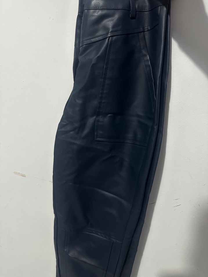 Kadınlar için siyah midi uzunlukta, kemerli, regular fit deri pantolon. Sokak stiline uygun, günlük kullanıma uygun. (Çok küçük yapışkan lekesi var ben uğraşmadım temizlemek için )