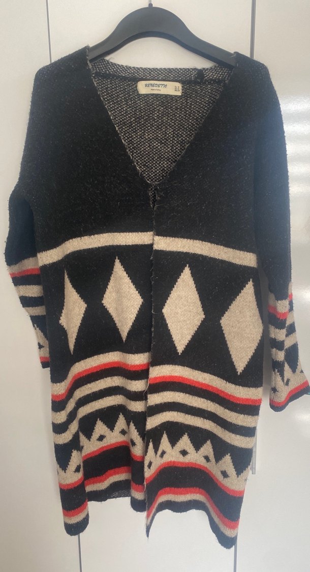 Kadınlar için örgü yün kumaştan,kalın.desenli ve koyu gri tonlarında bohem tarzda uzun kollu, V yakalı, bol kesim hırka. Rahat ve günlük kullanım için uygundur. Çok sıcak tutuyor.36-38 beden uyumlu