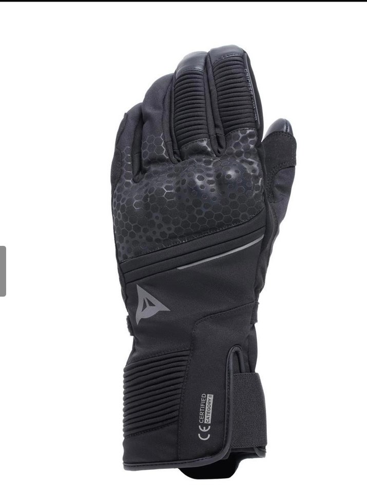 Desenli ve koruyucu dolgulu siyah kadın biker eldiveni, modern ve şık bir görünüm sunar. Kışlıktır. Dianese Tempest Dry modelidir. İçi polarlı, su geçirmez, sıcak tutar.