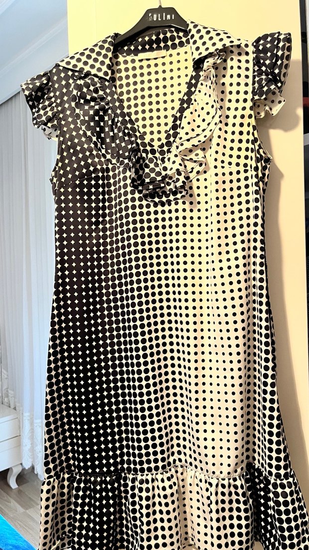 Kadın diz üstü puantiyeli volanlı hem günlük hem şık elbise