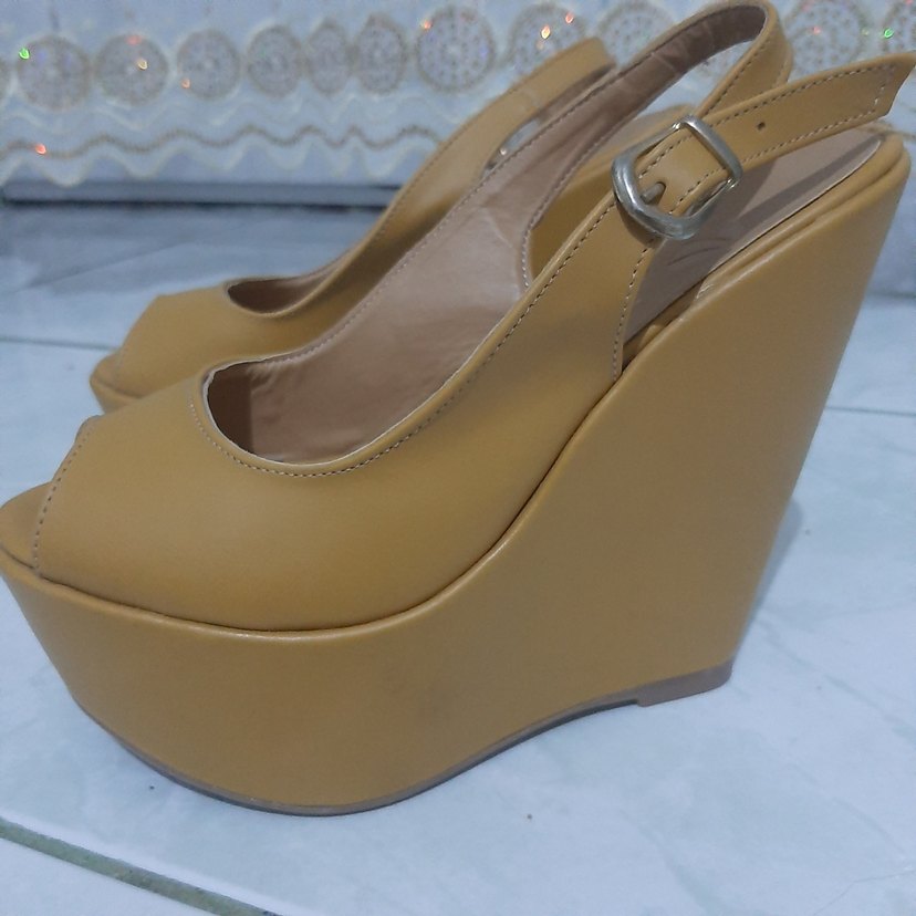 hardal sarısı yüksek dolgu topuk bir kaç kez tek giyildi çok iyi durumda 38 numara