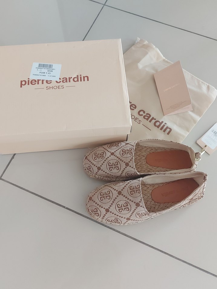 Bej renkli, desenli kadın espadril ayakkabı.39 numara ancak dar kalip 38 için daha uygun olur.Dolgu topuklu, kauçuk malzemeden, bohem tarzda, günlük kullanım için uygun. Marka: Pierre Cardin. #pierrecardin #yenietiketli #kadinayakkabi