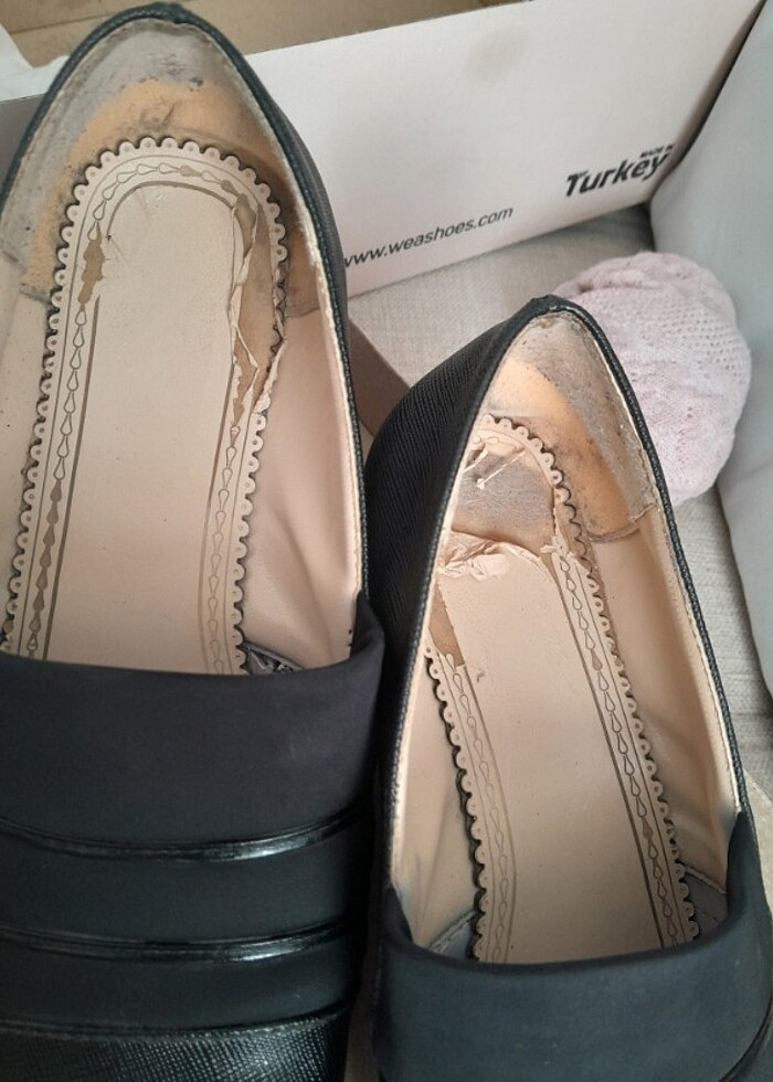Ayakkabın tabanında biraz yırtılmş. Dolgu topukdur rahat ve konforludur