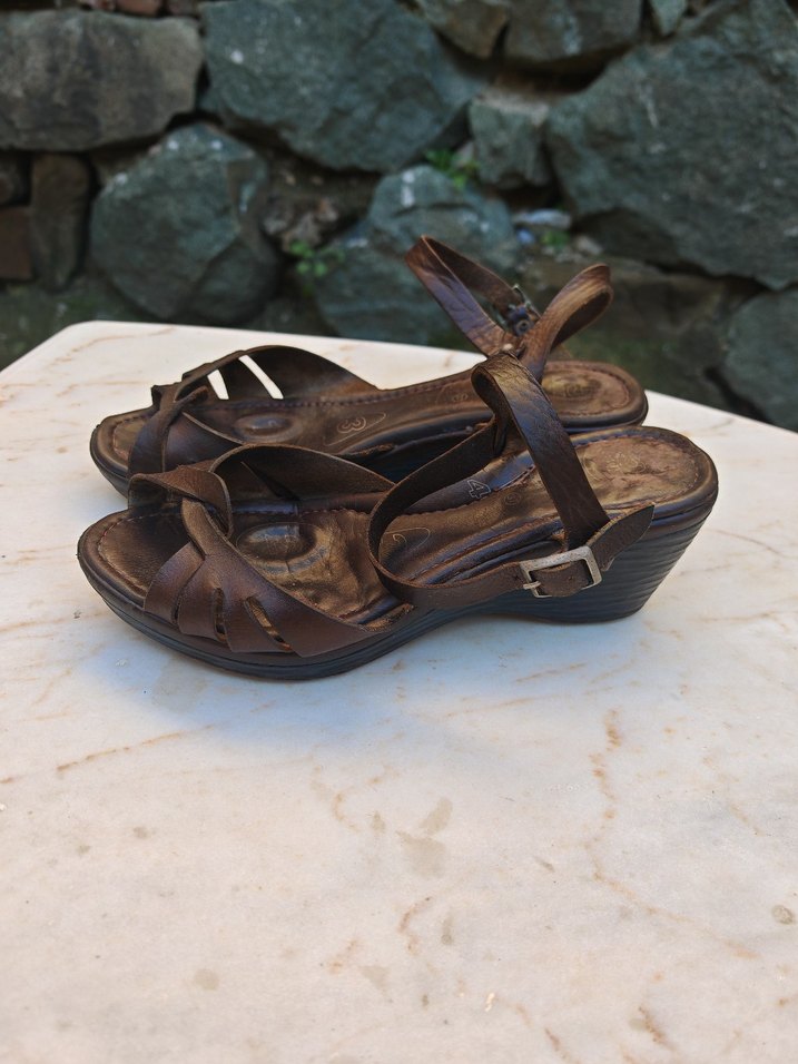 Dolgu topuklu ve drapeli tasarıma sahip. Günlük kullanım için bohem tarzda uygun. İyi durumda