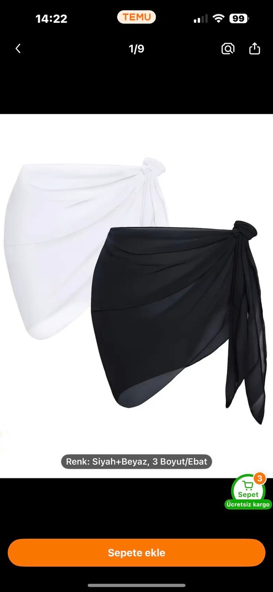 Kadın Drapeli Midi Pareo Siyah Beyaz İki Adet