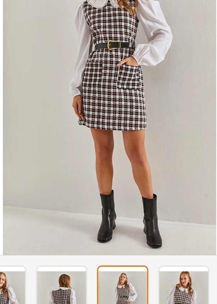 Kadın Ekose Bebe Yaka Kısa Elbise Trendyol Milla KEMER DAHİL Hiç kullanılmamış, sıfır, paketli