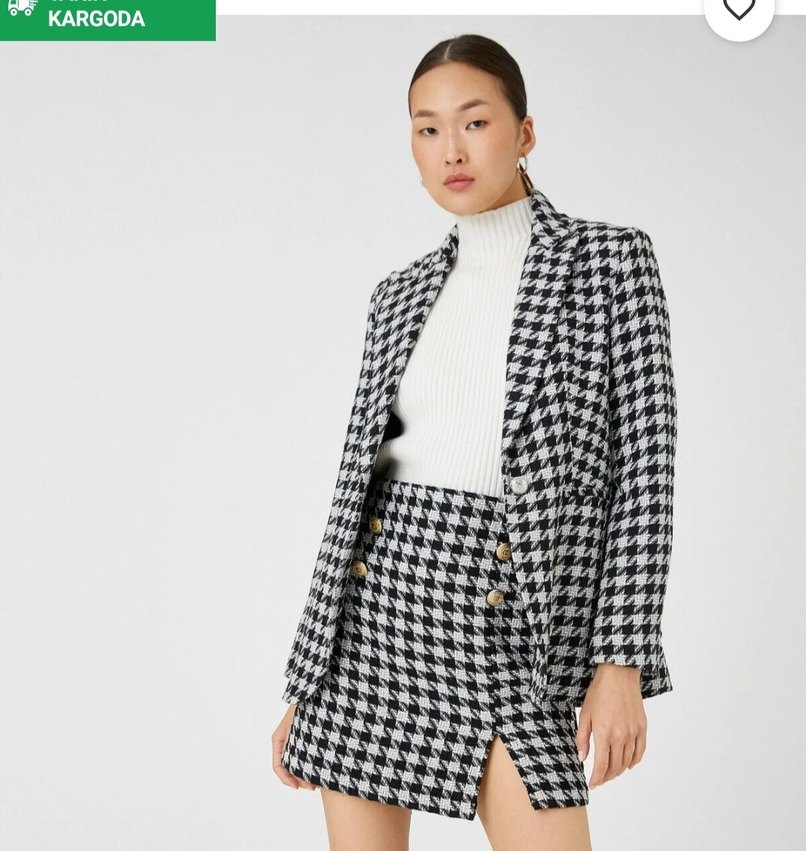 Gri ekose desenli kadın blazer, kesik yaka, uzun kollu ve düğmeli. Normal kesim 2 saat kadar kullandım defosu yoktur
