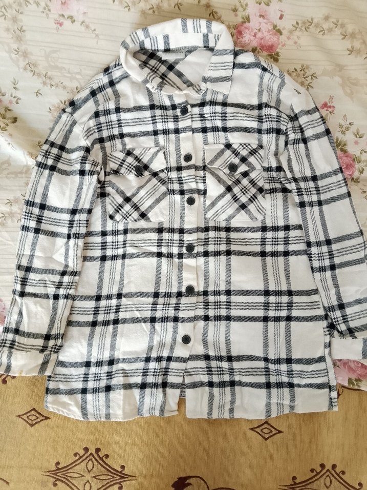 10-11 yaş fotoğraflarda lekeleri vardır.Kadınlar için düğmeli, uzun kollu ve yakalı pamuk gömlek. Rahat kesimi ve midi boyuyla günlük sokak stiline uygundur. Beyaz ve gri ekose desenlidir.