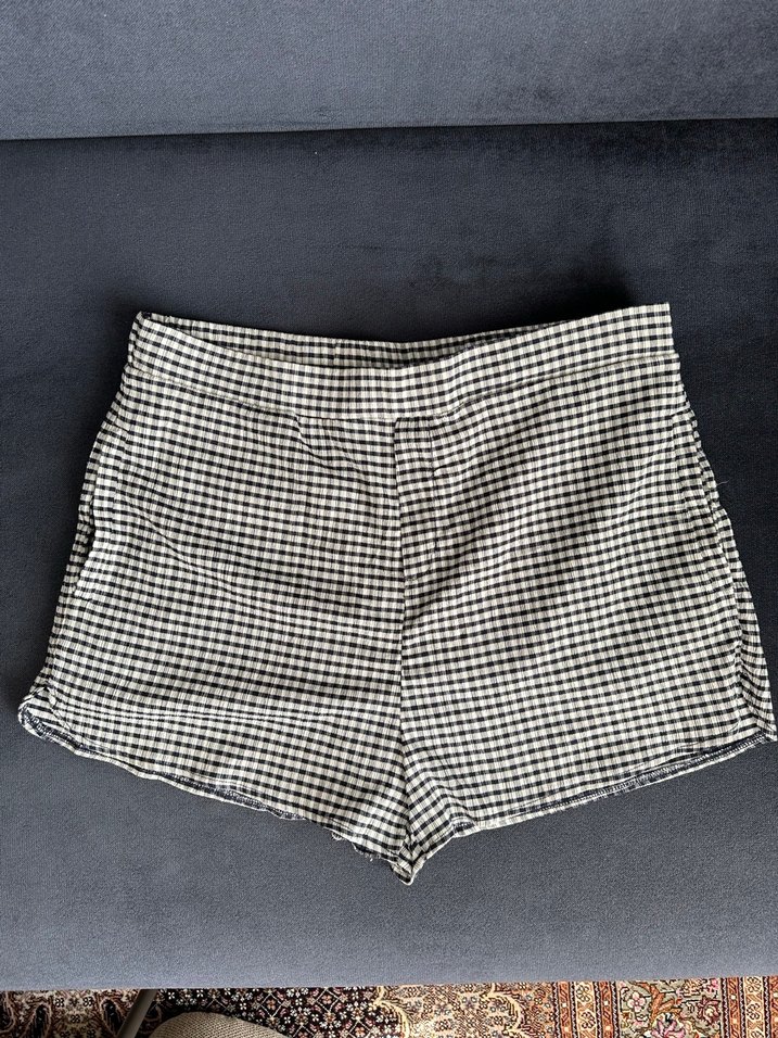 Gri ekose desenli, pamuk kumaştan yapılmış, mini şort. Sokak modası ve günlük kullanım için uygundur.