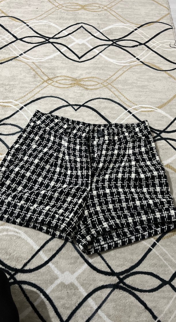 Kadınlar için siyah beyaz ekose desenli, örgü pamuklu, bol kesim mini etek. Günlük kullanım için rahat ve şık bir seçenek.