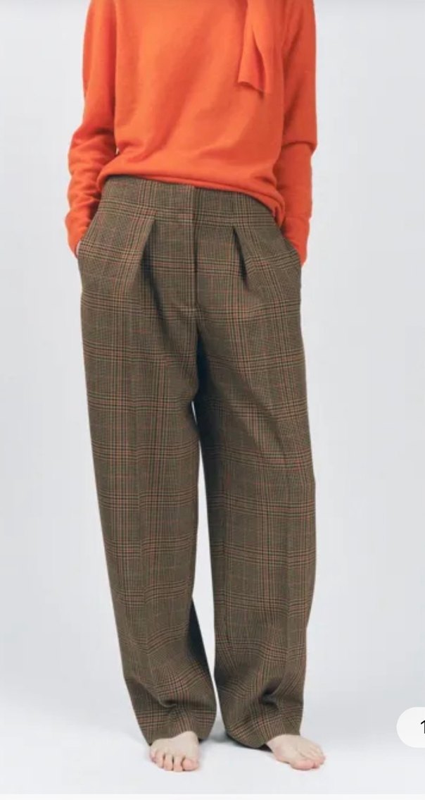 Kadın ekose Pilili Midi Yün Pantolon
