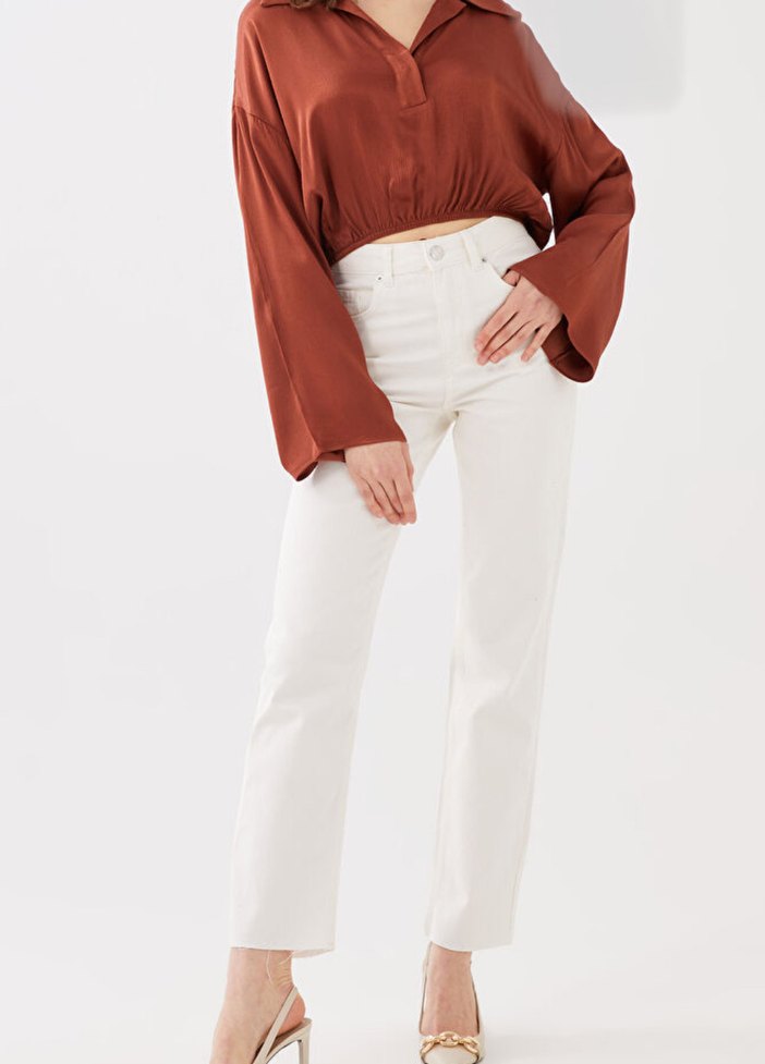 Kadınlar için ekru renkte, düz kesim ve midi boyda, ipeksi dokulu pantolon. Günlük kullanıma uygun, zahmetsiz şıklık sunar.