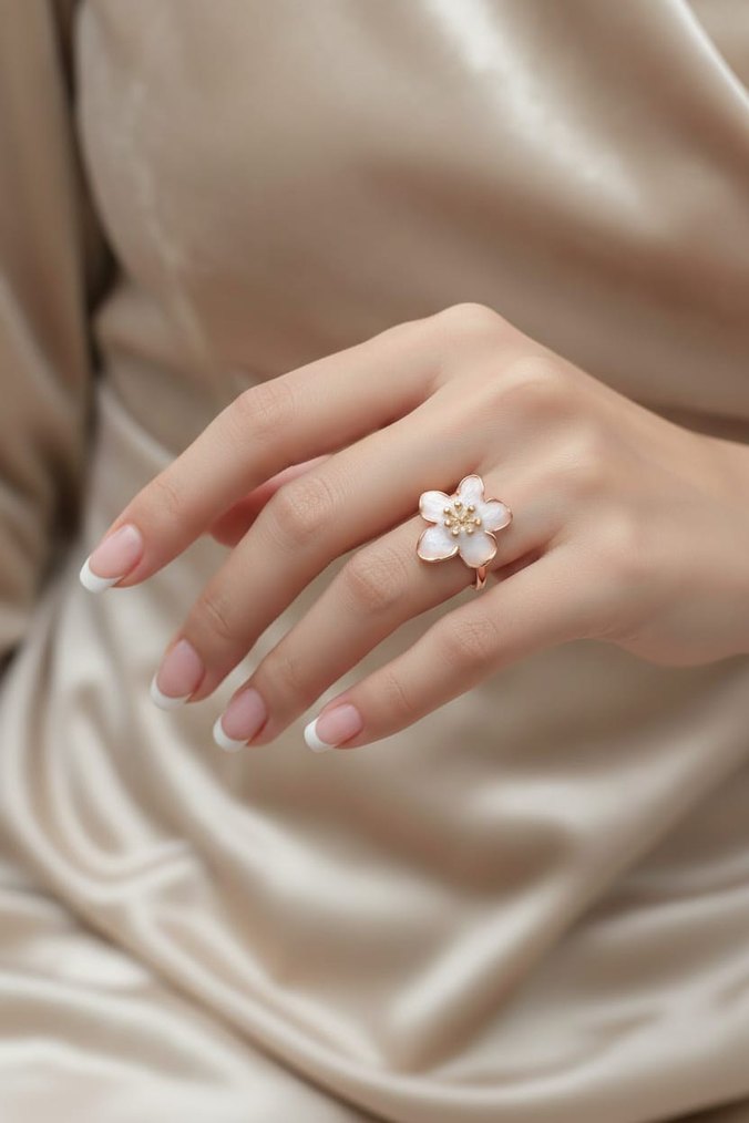 Kadın El İşçiliği Rose Gold Çiçek Desenli Yüzük