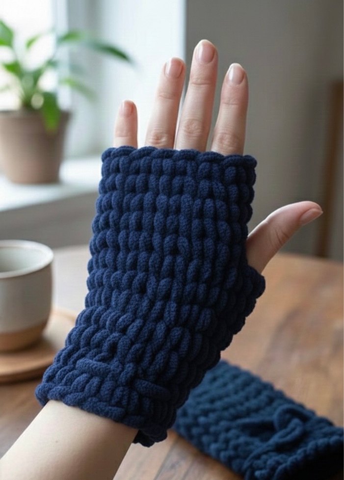 Kadın El Örgüsü Parmaksız Eldiven Puffy