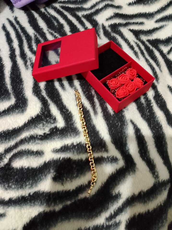 Renkli kırmızı kadın el zinciri, kürk detaylı ve cesur bohem tarzda, romantik akşamlar için uygun. Gül desenli kırmızı kutuda sunulur. ️ çelik