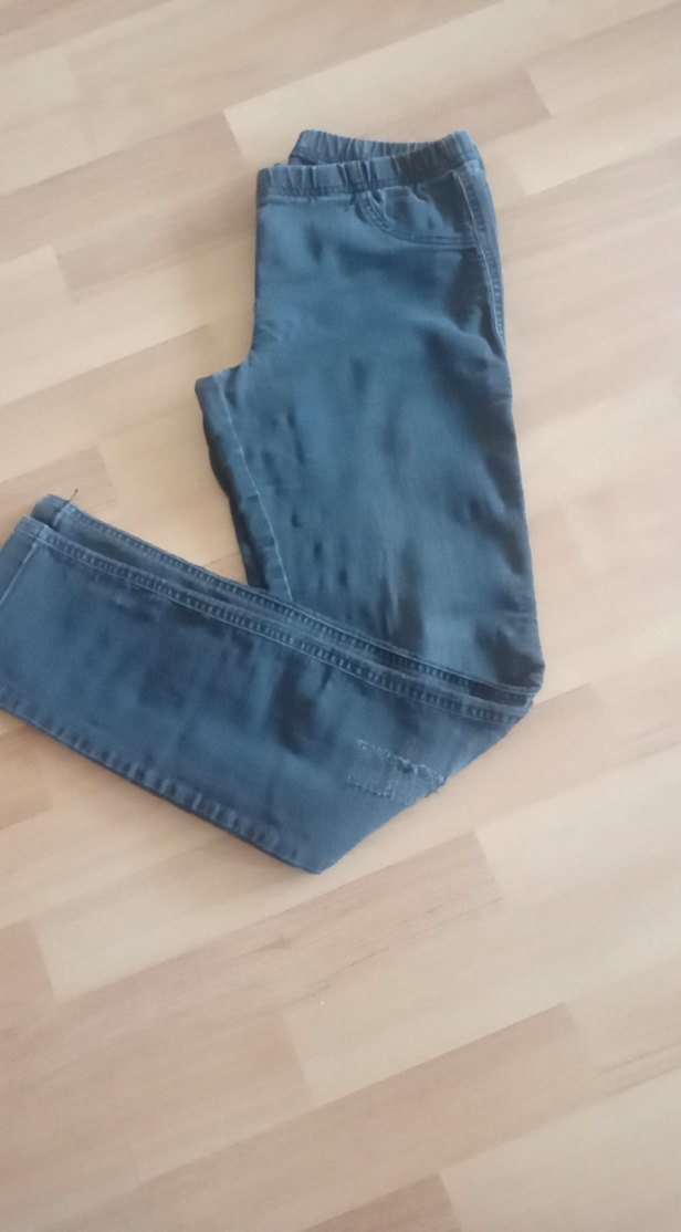 Kadınlar için elastik bel bantlı, gri renkte regular fit denim pantolon. Günlük kullanıma uygun midi boy ve desensiz tasarım. likralı bel lastikli boy 90cm