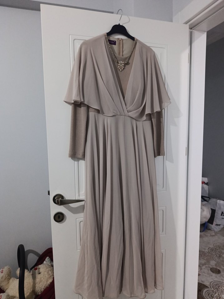 taş rengi 40 beden ama kalıbı geniş 44 bedene kadr olur temiz kullanılmış duruşu çok şık kiloyu kapatan bi formu var