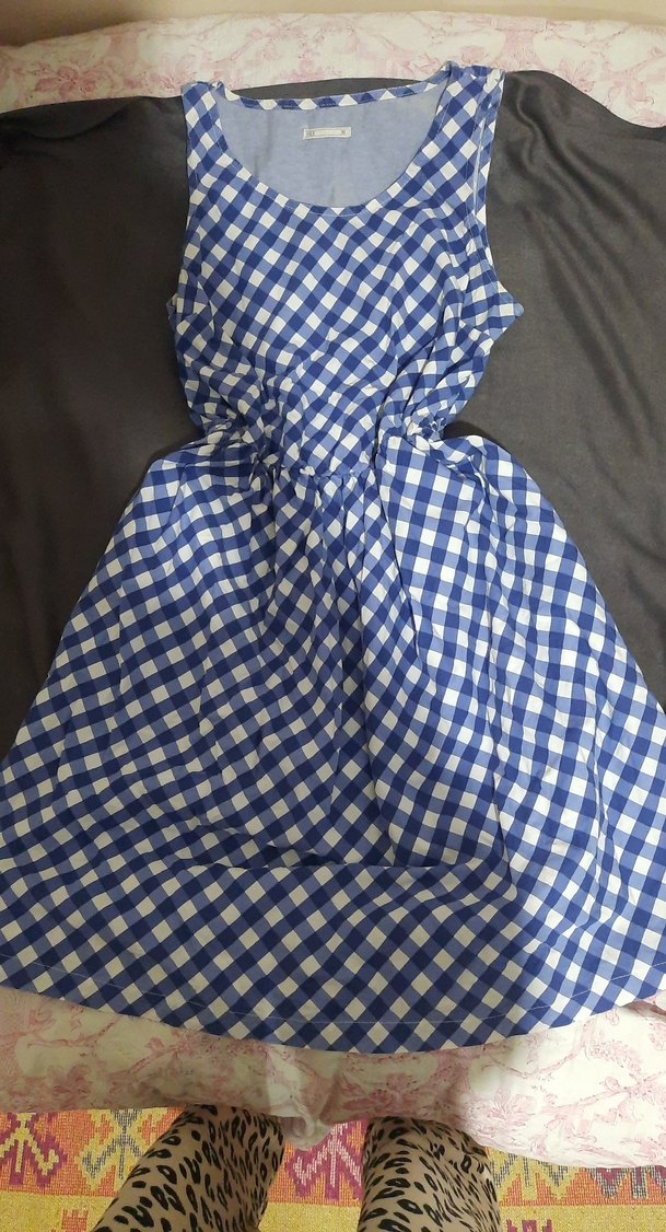 Mavi beyaz pötikareli kadın elbise herhangi bir deformasyonu yoktur çok az giyildi