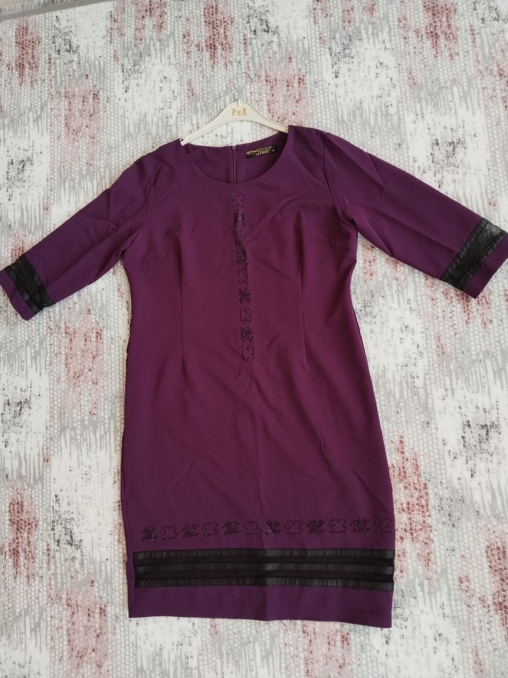 Mor uzun kollu, düğmeli ve nakışlı desenli bohem tarzda elbise.Elbise boyu 108 cm, kol boyu 49 cm, 2 koltuk altı arası mesafe 55 cm dir. İç göstermez. Boncuk detayları hiç dökülme yoktur