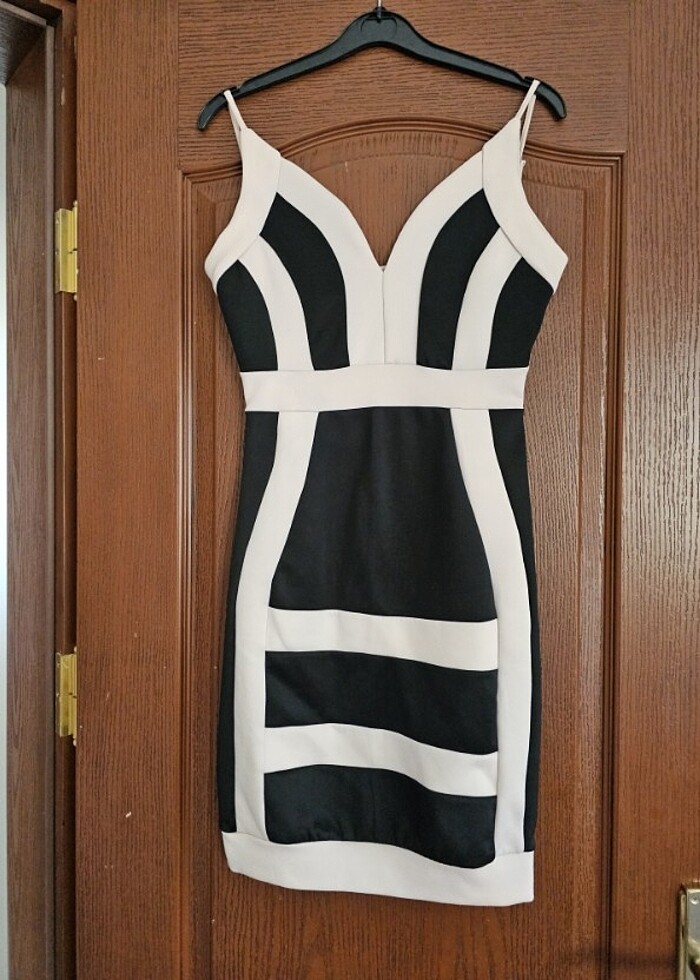 Siyah pudra renk elbise. 1 defa giyildi. Sorunsuz. Çift kat scuba kumaş. İc göstermiyor.Marka temsili