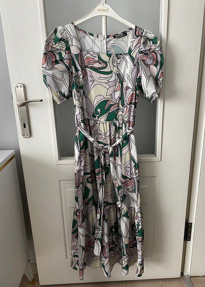 Deniz butik ürünüdür. Yeni gibi çok şık elbise cepli arkadan fermuarlı belden bağlamalı
