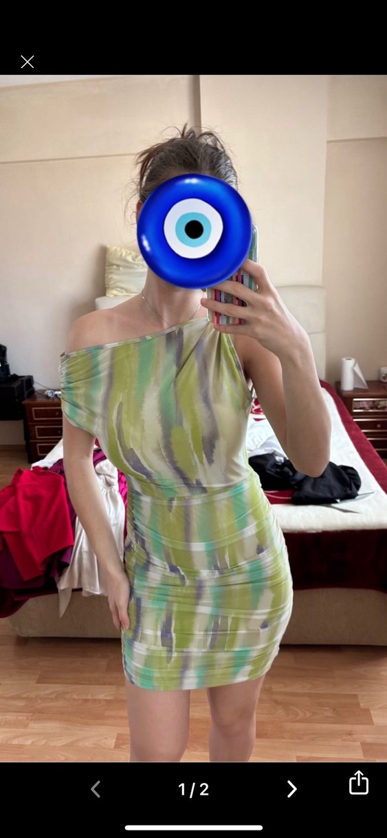 Hafif haki tonlarında bağcıklı askılı ve drapeli detaylarla mini boy, vücuda oturan kadın elbisesi, parti için uygun.