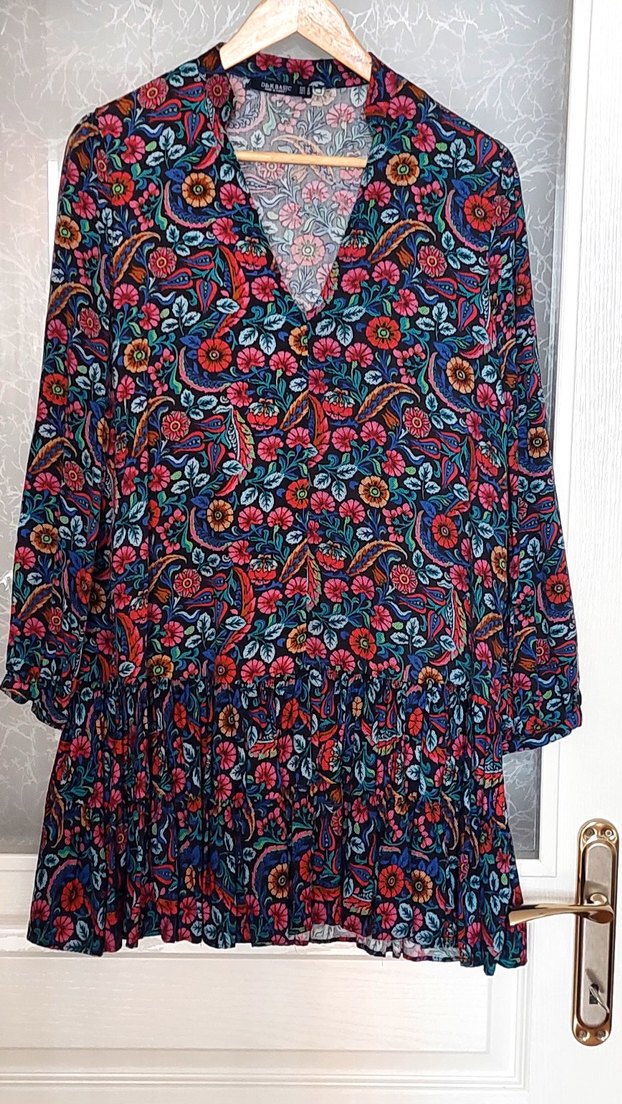 çiçek desenli orta kalınlıkta yüzde yüz pamuk alttı pilise detaylı çok cici şık rahat elbise özel gün için saatlik kullanılmıştır tertemiz lekesiz kol uçları düğmeli yenisinden farksız iyiki almışım diyeceksiniz
