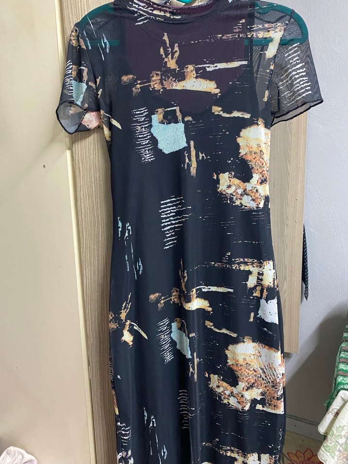 Transparan tarzda içinde askılı elbisesi var siyah renkte o şekilde kullanılıyor