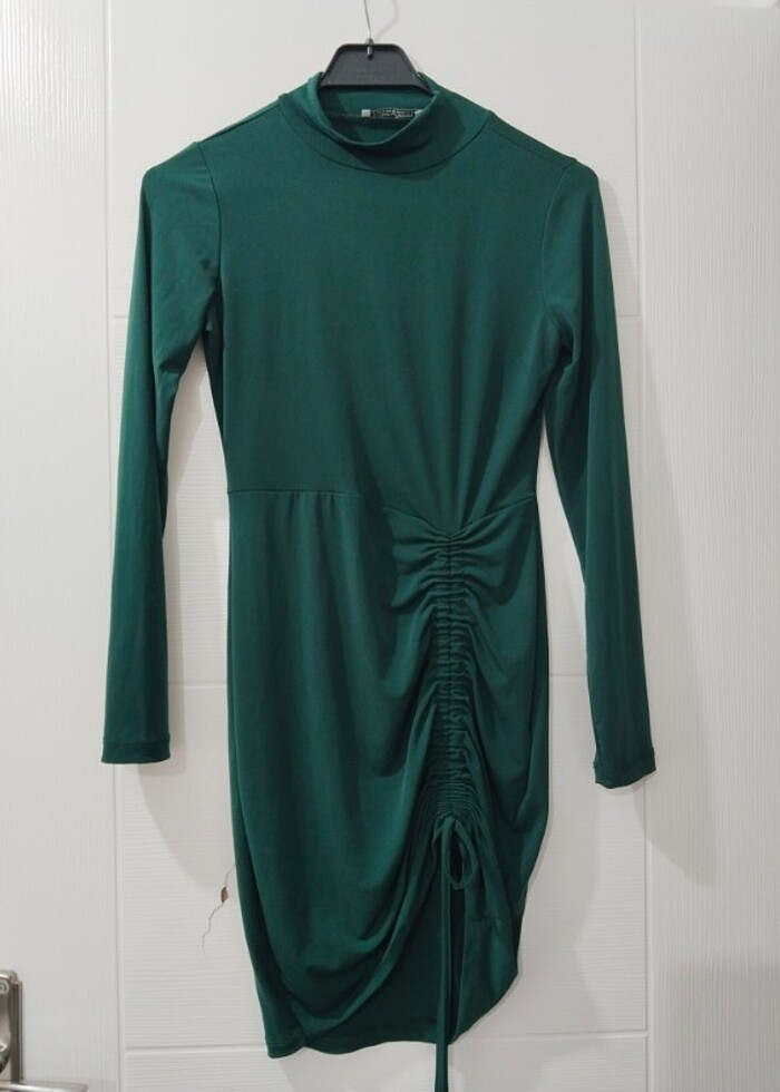 S beden, yeşil renk, boyu ayarlanabilir uzun kollu elbise
