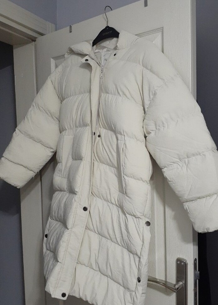 Temiz sağ kolda sadece dikişlerde elyaf yok gibi duruyor ama dışardan belli olmuyor başka hiçbir kusuru yok elyaf uzun mont