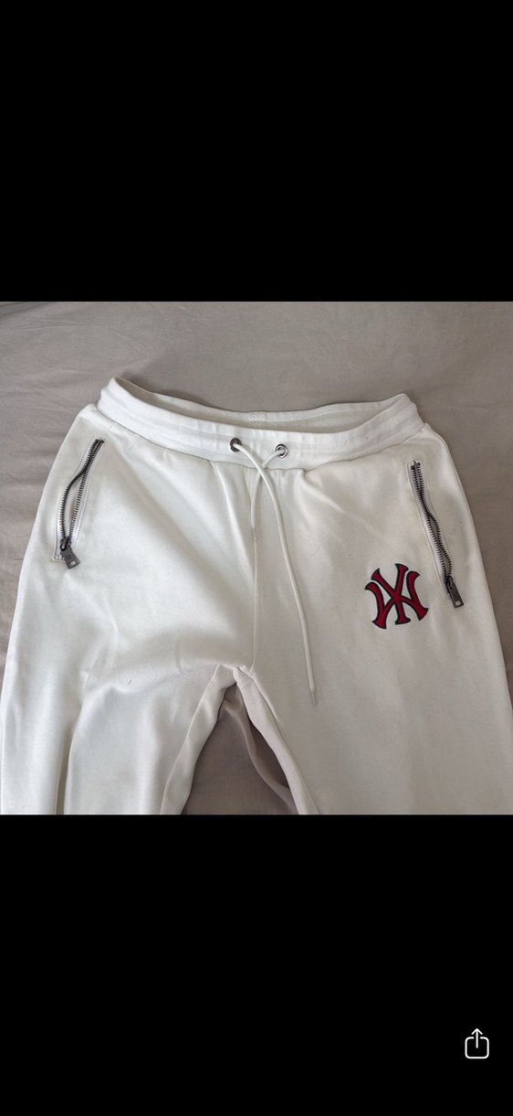 Kadın erkek için pamuklu, rahat kesim, normal midi boy beyaz eşofman altı. Fermuarlı cepleri ve gri logo detayı bulunur, spor ve gündelik sokak stili için uygundur. ♀️