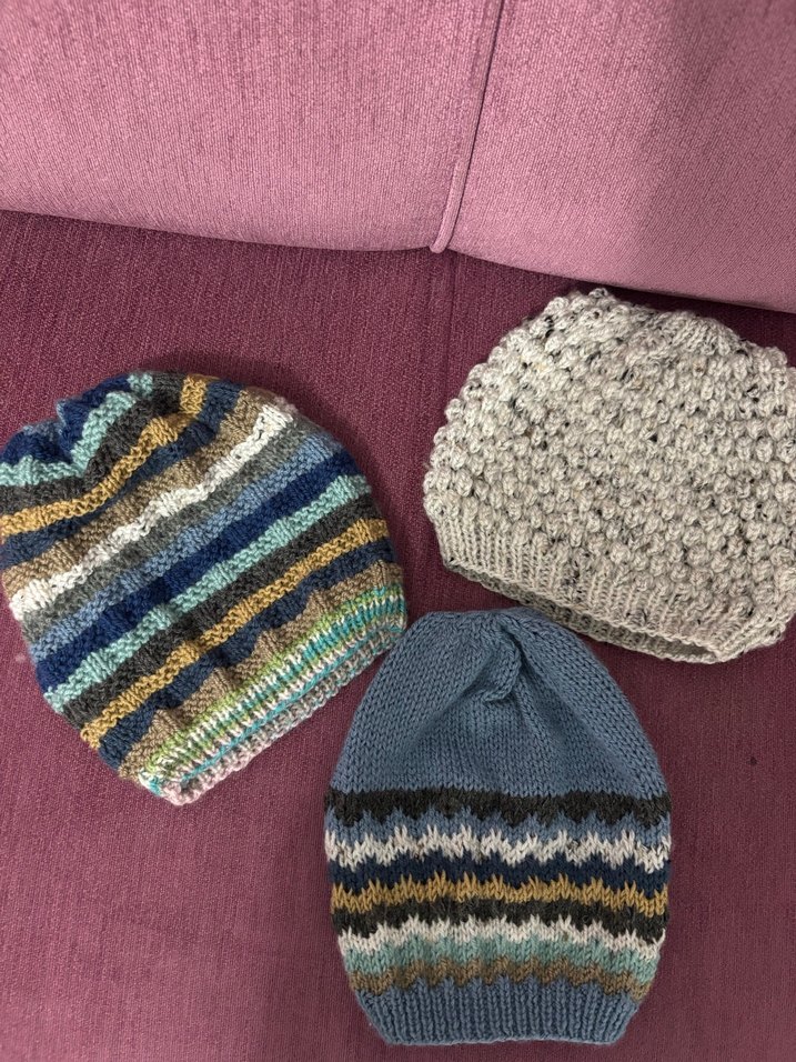 Yumuşak örme kumaştan yapılmış, çok renkli ve bohem desenlere sahip üç adet örgü bere. Soğuk günler için rahat ve şık.