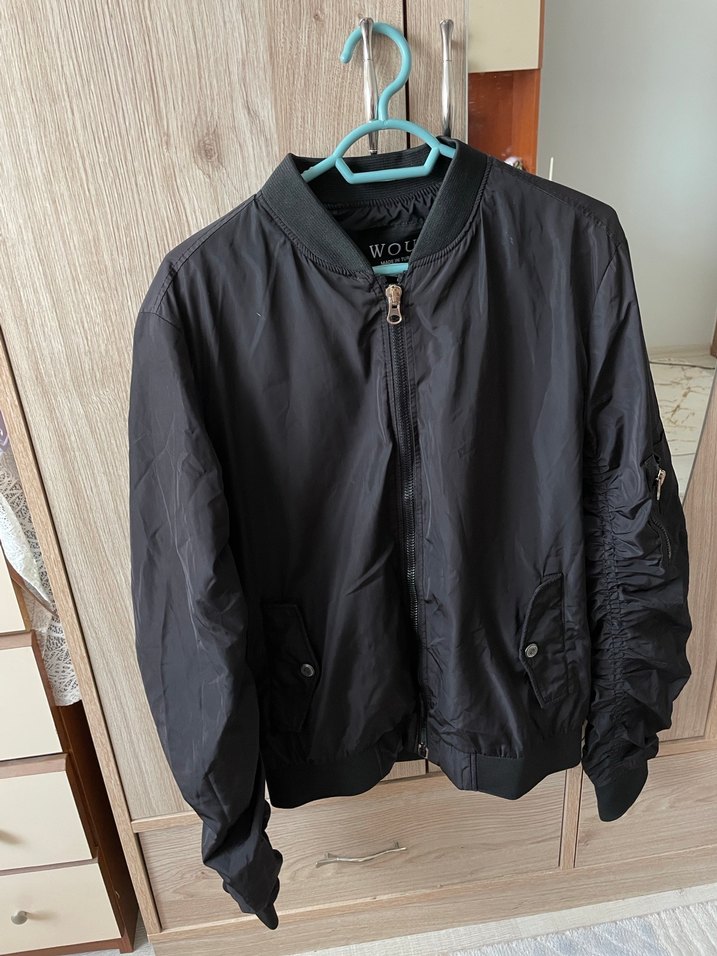 Kadın siyah fermuarlı ceket, yakalı ve uzun kollu, salaş kesimdir. Sentetik kumaştan üretilmiş, günlük kullanım için uygundur.
