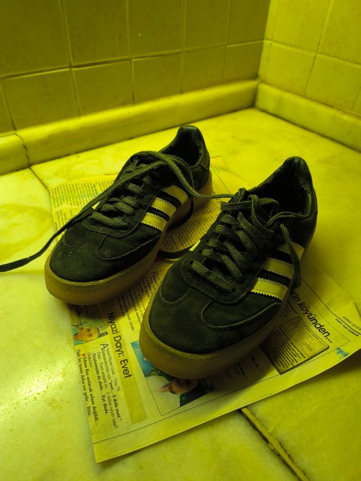 Siyah kadın erkek unisex spor ayakkabısı, kauçuk taban Spor athleisure tarzında, velcro bağlama ile trendy casual görünüme sahiptir. dışında tek bir hasar veya kusur yoktur. orijinal samba modeldir. nubuk deridir. içindede deri olduğuna dair amblemi mevcut. topuk kısmında ufak soyulmalar mevcut ama asla öyle rahatsız eden görüntü yoktur. 40-41 giyene uygundur.